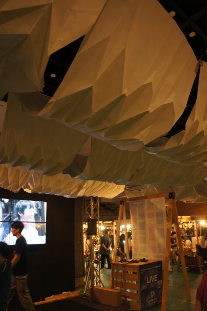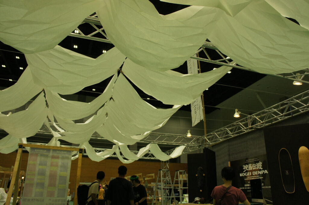 その時期に行われる「千年未来工藝祭」という日本全国の工芸作家が集い、販売、ワークショップを行なうイベントで、ここのメインアリーナの中心となるブースの空間を折り紙で演出するという僕にとっては前代未聞となる「空間演出」を折り紙で創り上げるという課題でした。